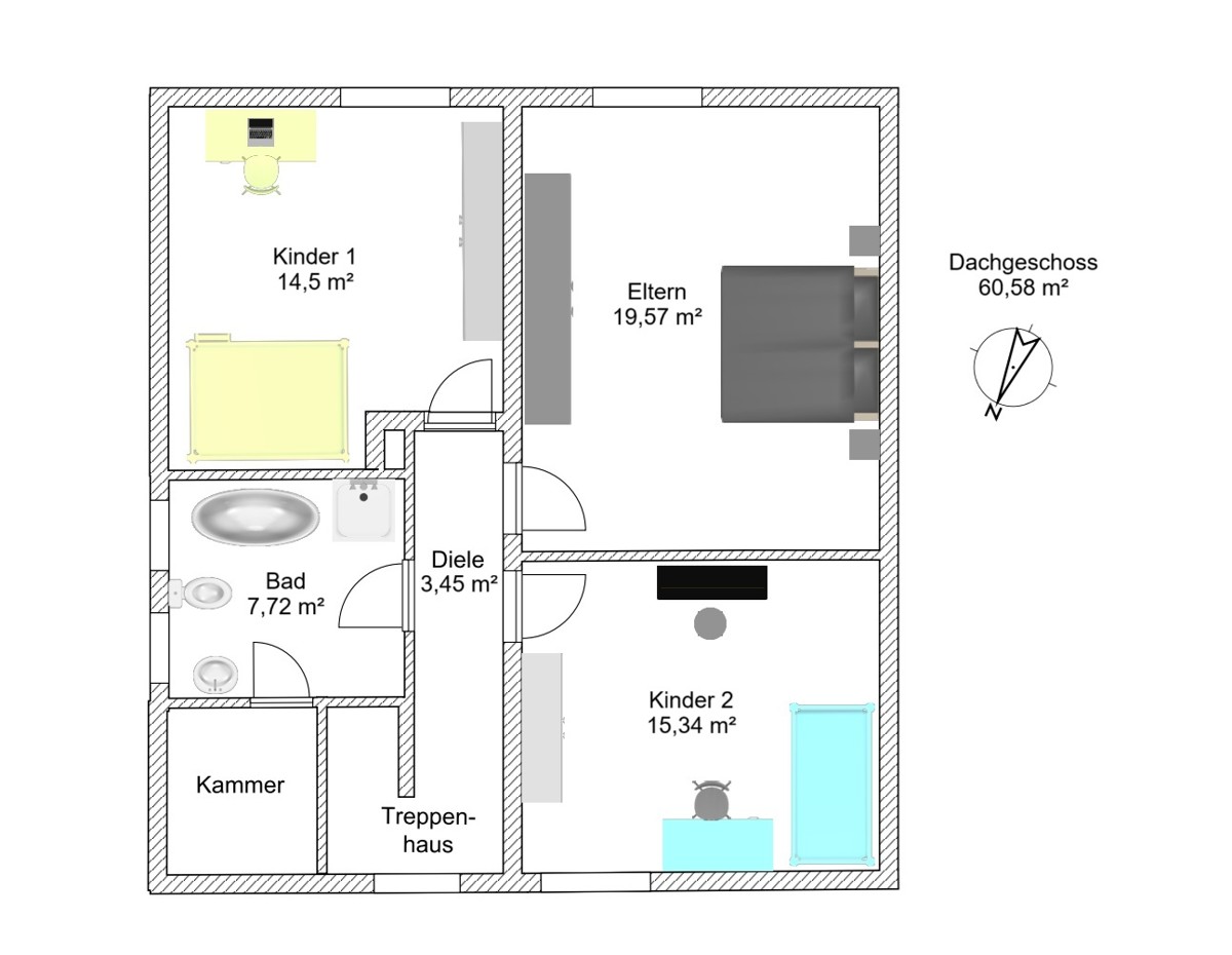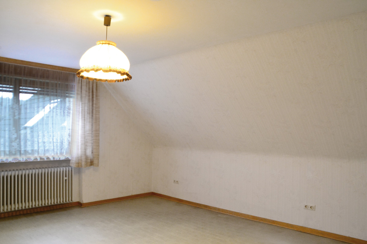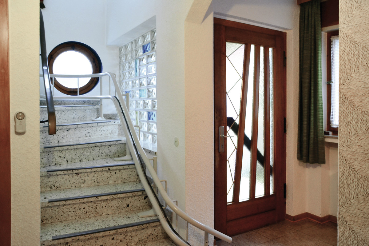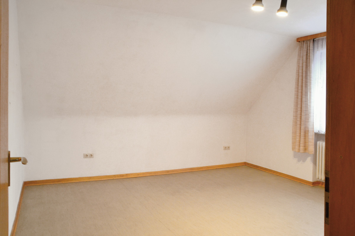 Vom Obergeschoss aus gelangt man auf den Speicher, der auch Stauraum bietet.