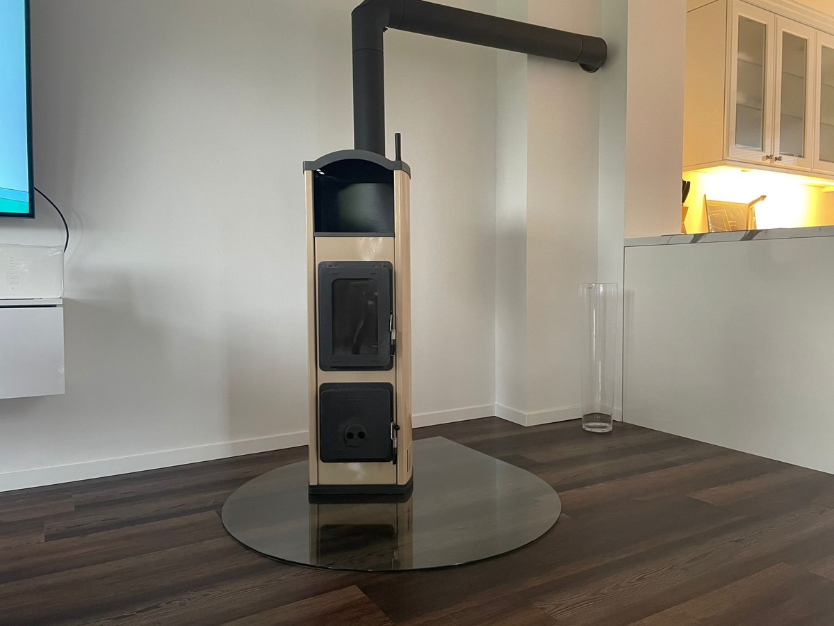 Im Wohnzimmer befindet sich ein Kaminofen, der zum Inventar gehört.