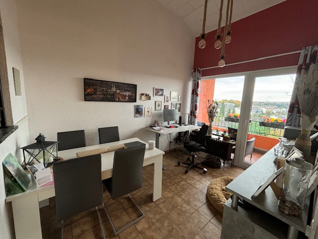 Desweiteren befinden sich auf dieser Etage eine Küche und ein Esszimmer mit Balkon, der einen herrlichen Ausblick bietet, sowie ein weiteres Zimmer und Badezimmer.