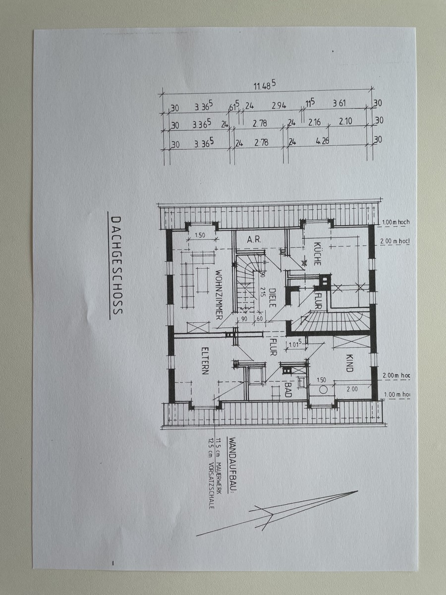 Im Dachgeschoss befindet sich eine Maisonettenwohnung ( 110m² ) , mit 4 Zimmern, 2 Badezimmer und einem Wasch- und Trockenraum. Diese besondere Wohnung ist mit einer Treppe ausgestattet, die in den ausgebauten Spitzboden führt.