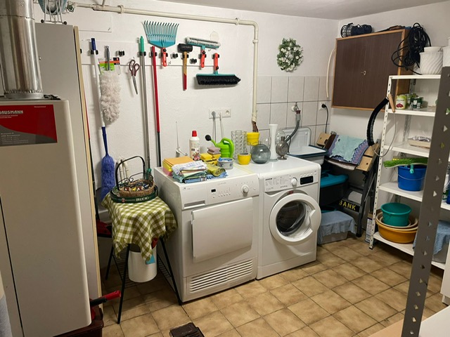 Im Keller gelangt man in die Abstellräume, des Weiteren in einen Partyraum mit Bar.