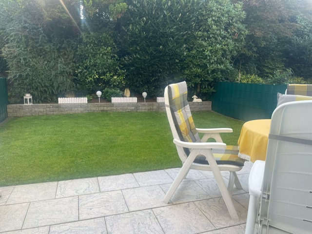 Das 183 m² große Grundstück teilt sich in einen Vorgarten und einen gepflegten Hintergarten mit Terrasse.