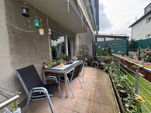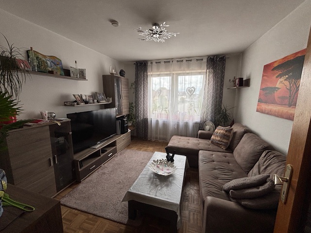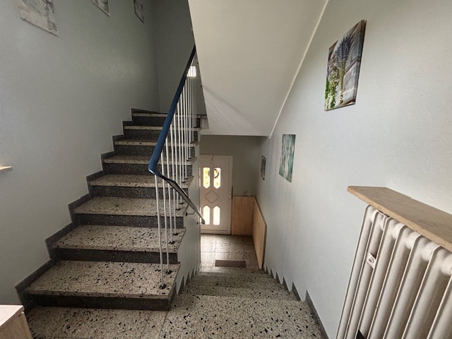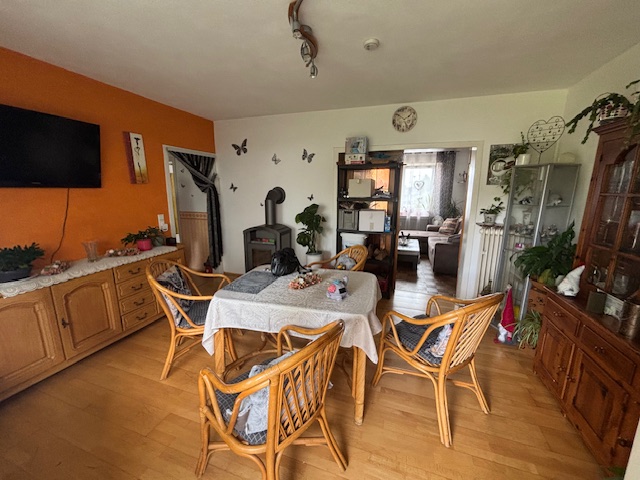 Die Wohnung im Obergeschoss verfügt über eine Küche , ein Eszzimmer mit Zugang zum Balkon, ein Wohnzimmer, ein Schlafzimmer,sowie ein Badezimmer mit Badewanne.