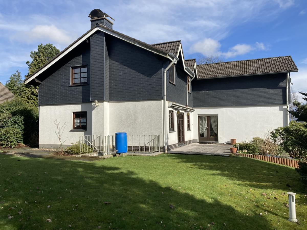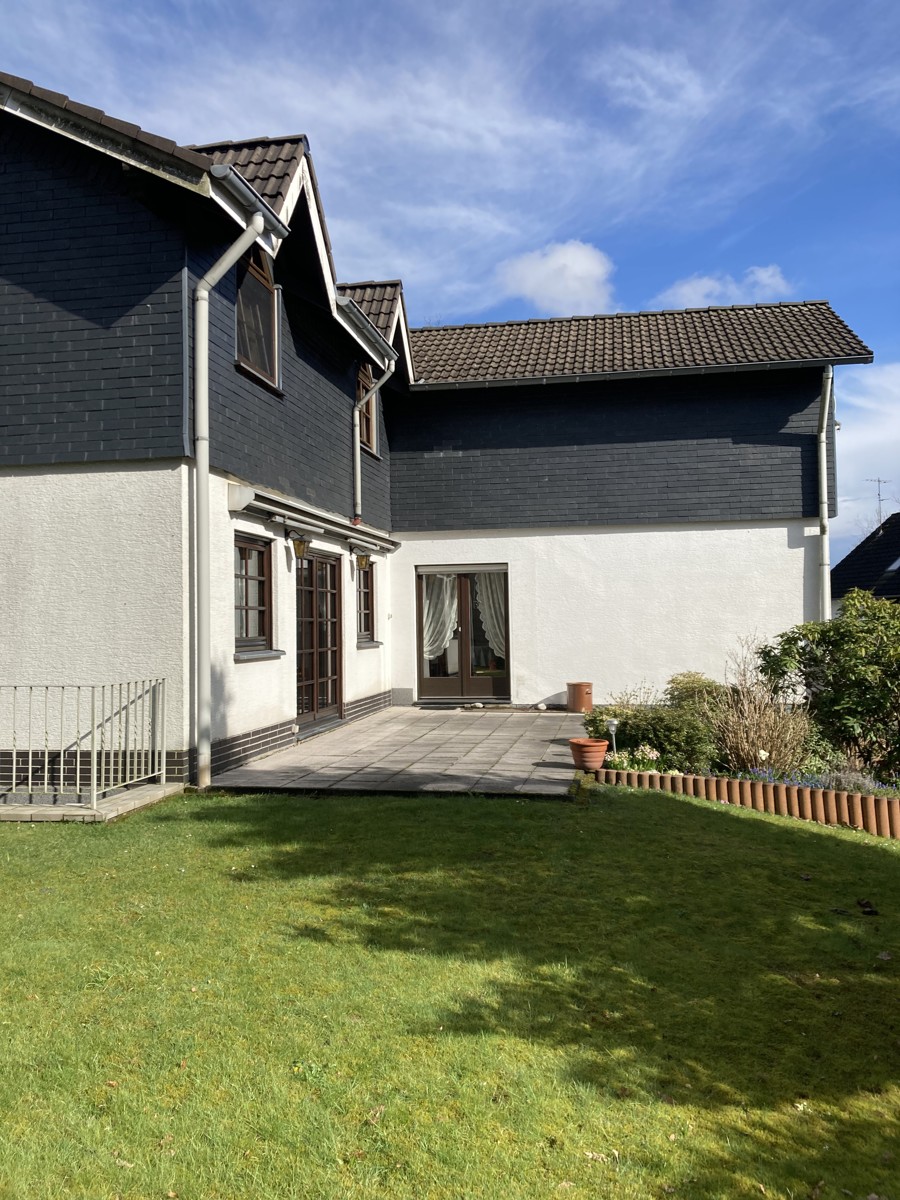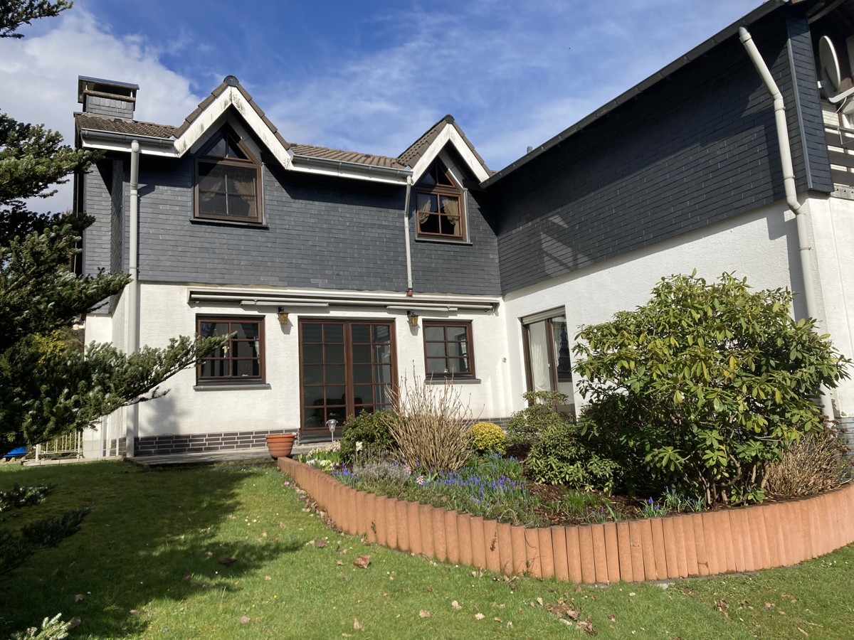 Der sehr ruhige Garten mit freiem Blick ins bergische Land, verfügt über ein Gartenhaus / Geräteschuppen.