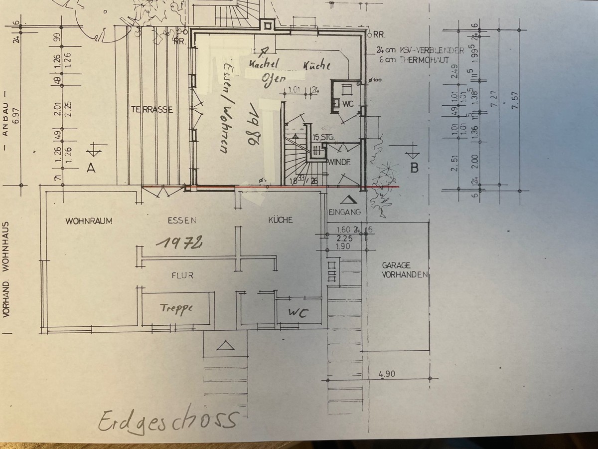 Das vordere Gebäude ( Baujahr 1972, Wohnfläche 113m²) verfügt über großzügige Räume, einem seperatem Gäste WC, Badezimmer mit Dusche und Badewanne, goßer Wohnküche, Esszimmer, Wohnzimmer, einem Schlafzimmer mit Balkon, sowie ein weiteres Zimmer.