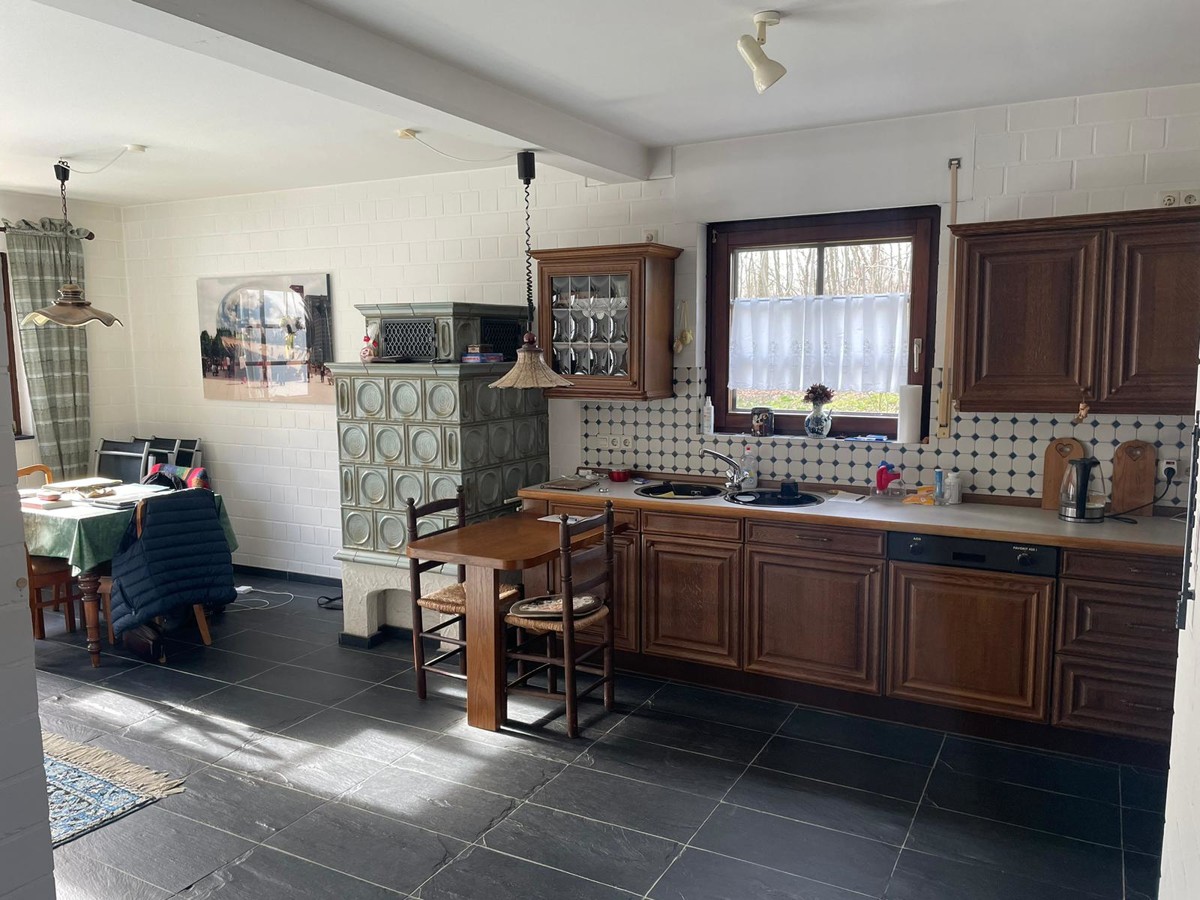 Hier findet man einen offenen Küchen und Wohnbreich mit Kachelofen und einem seperatem Gäste WC.