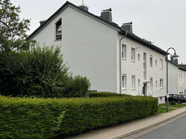 Das Mehrfamilienhaus liegt in einem Wohngebiet im Ortsrand von Wermelskirchen in Richtung Remscheid.