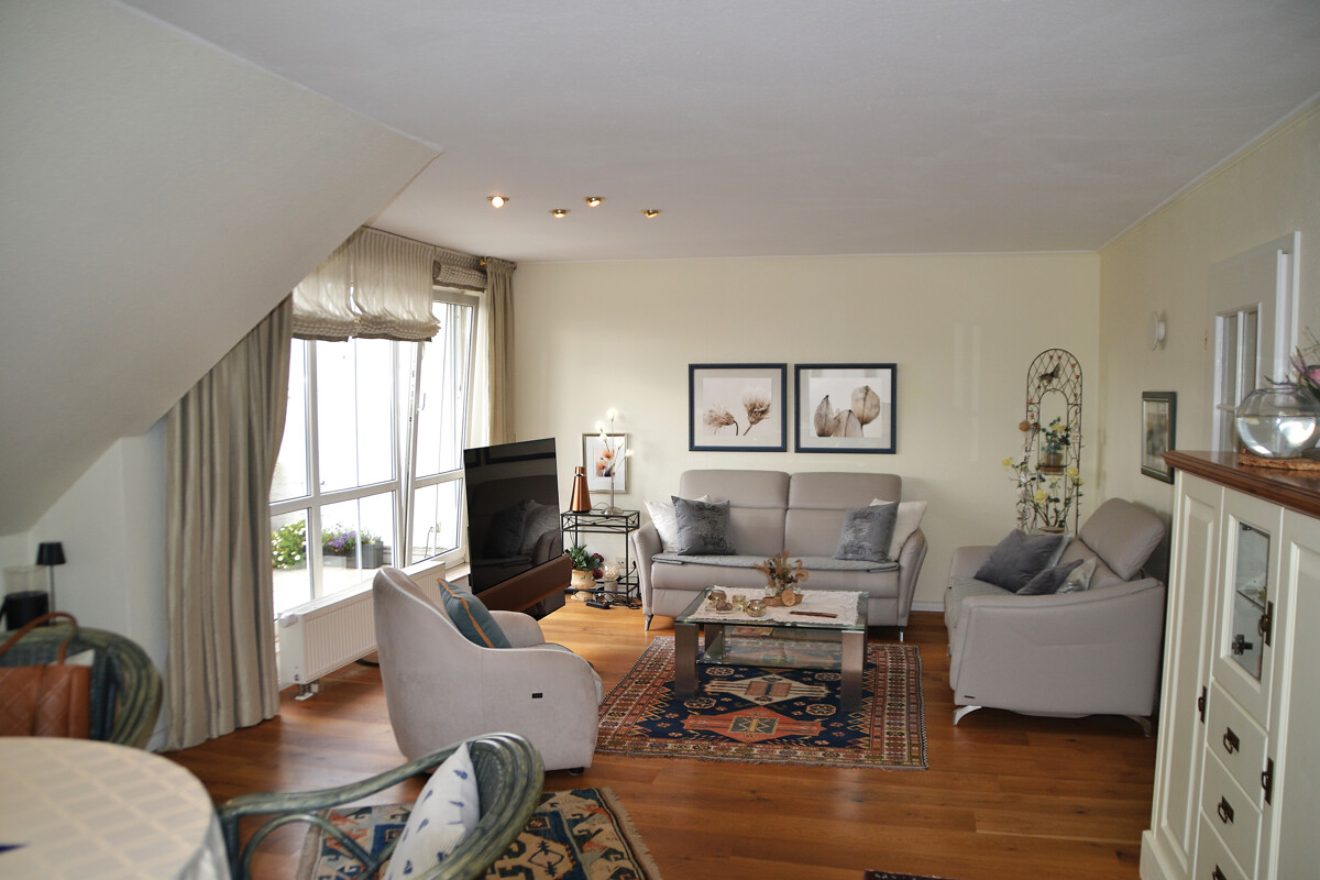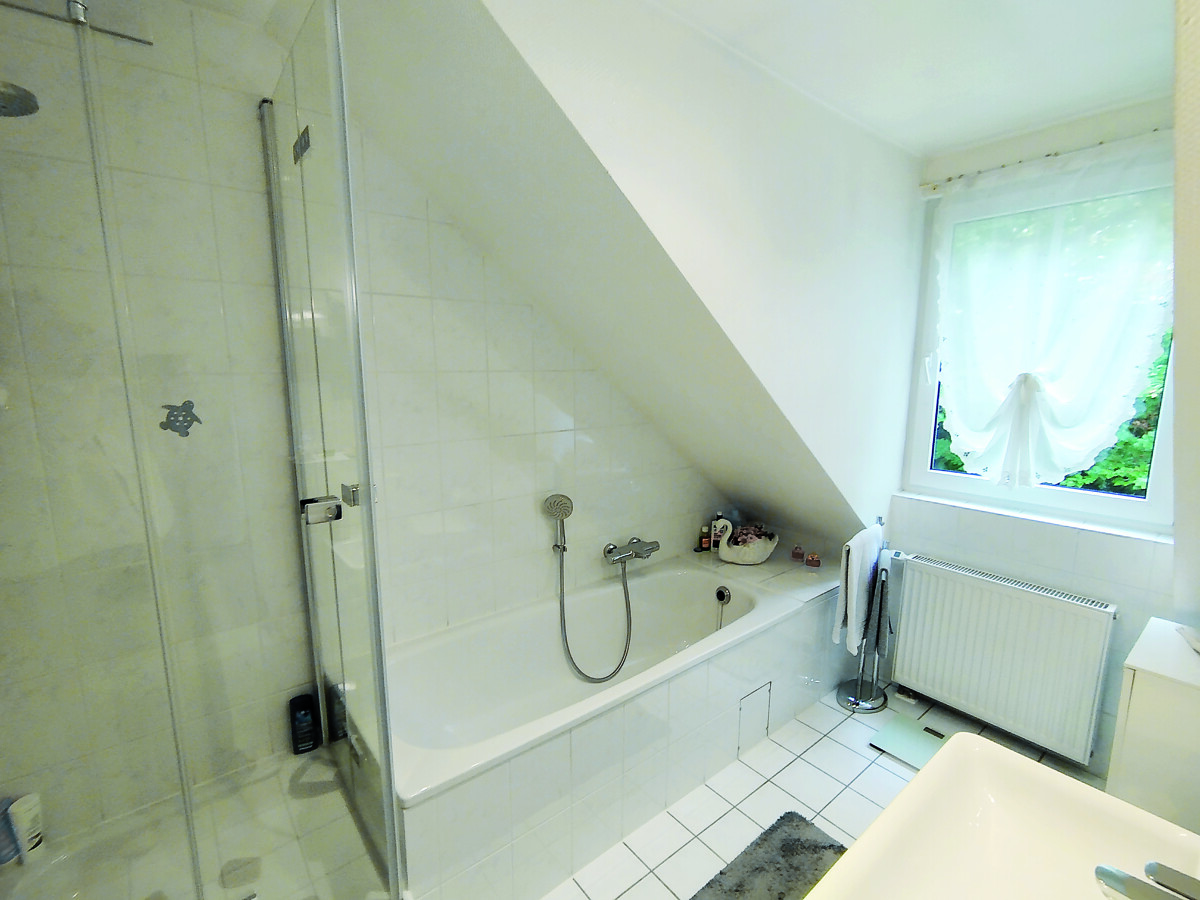 Die exklusive Eigentumswohnung bietet viel Komfort. Sie ist über zwei Etagen 1995 errichtet worden und bis jetzt wohnen die Eigentümer in dem Objekt.