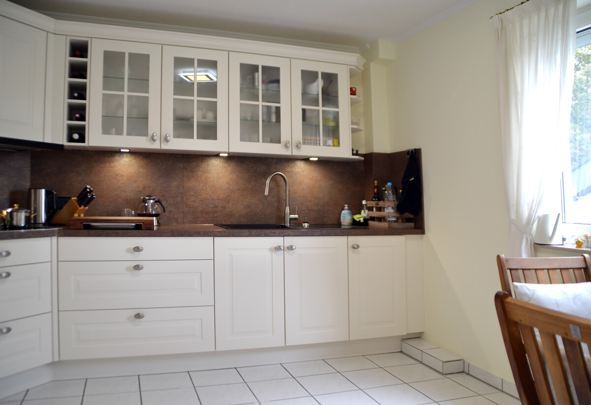 Die große, moderne Küche befindet sich neben dem Wohn- Esszimmer.